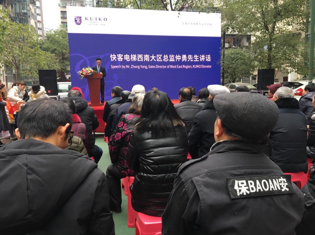 自从2017年中旬,重庆市政府颁布加装电梯相关政策后,快客电梯以专业化的态度深入各个小区;以智能化的产品护航居民便利出行,大半年时间里,快客电梯的身影已布满重庆市渝中区、江北区、南岸区、沙坪坝区等主城九区,压倒性地占领了重庆市绝大多数的旧楼加装电梯市场份额。除了经济繁华的市区外,快客主动将触角伸入交通不便的乡镇地区,全力以赴攻克运输困难、地势险阻等客观问题,把加装电梯带到每位出行难的用户身边。目前,重庆市万州、云阳、涪陵、铜梁等区县的老旧小区也全面覆盖了快客出品的加装电梯。以云阳县政府宿舍小区为例,几个月前,快客电梯的精英团队在仔细勘测老楼房的具体结构后缜密计算、多次试验,为老干部家属院的这些老楼设计出了一套对楼房构造影响小,并能让电梯安全、高效运行的方案。随后就是马不停蹄地落实方案,城区建设、安监等部门对加装电梯的实施过程进行了严格的安全、质量监管及把控。项目竣工加装电梯投入使用后,小区里的住户喜悦之情溢于言表,对快客电梯表示了极大的感谢。而快客电梯公司以人为本的企业精神不仅体现在产品设计上,还表现在对待客户体贴入微的服务态度上,2018年初英国快客电梯西南区总监携公司研发部技术人才走进云阳县政府宿舍小区,开展电梯安全知识大普及活动。快客电梯西南区总监仲勇先生表示:“快客将坚持以卓越的品质和贴心的服务为用户的出行作坚固保障,以国际化的研发技术和严苛的制造标准作电梯行业的领先标杆。”